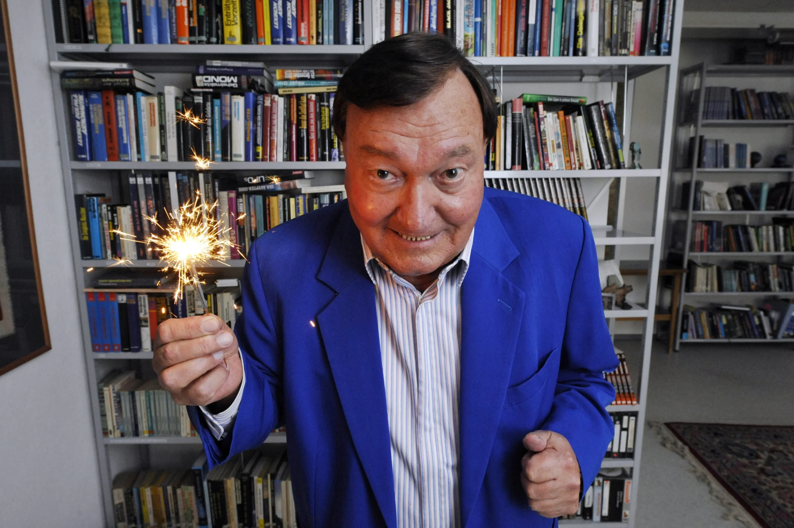 Däniken segura uma edição da Revista UFO, publicação da qual ele foi um dos grandes inspiradores, e constata a sua qualidade gráfica. (crédito: ARQUIVO UFO)
